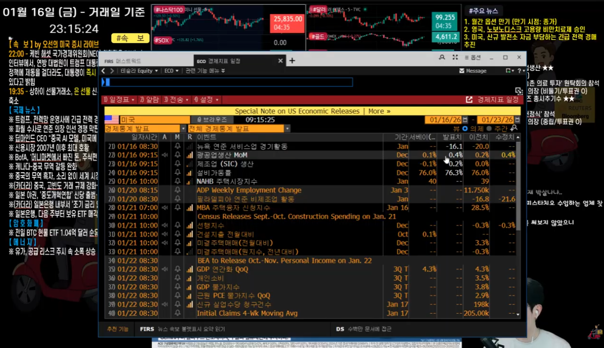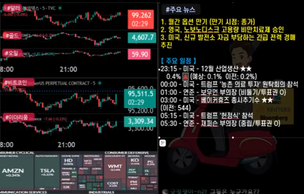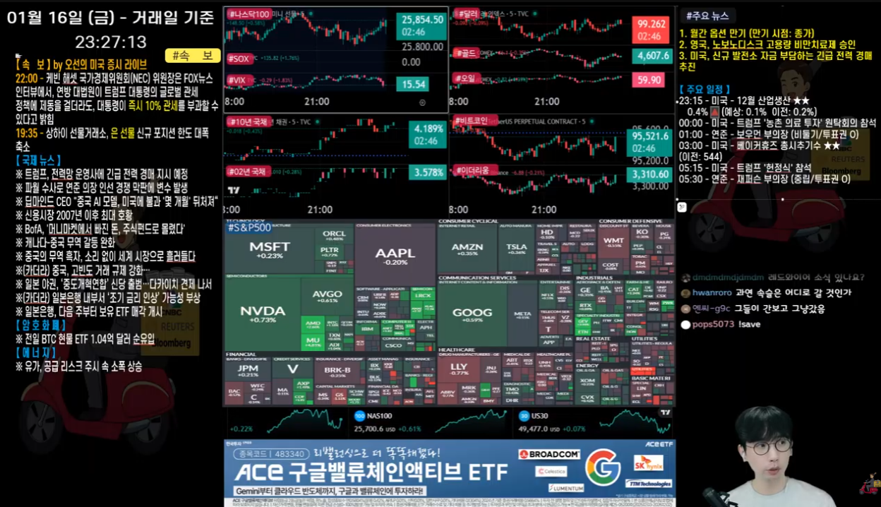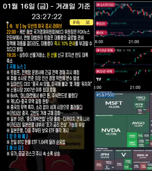 #오선의 미국 증시 라이브, 2026.01.16(금),[생방송] 미국, 긴급 전력 경매 추진| 월간 옵션 만기, 산업생산 | 트럼프, '농촌 의료 투자' 회의 참석 , 적극적으로 시청하기