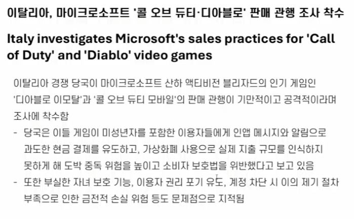 #Italy investigates Microsoft's sales practices for 'Call of Duty' and 'Diable Immotal