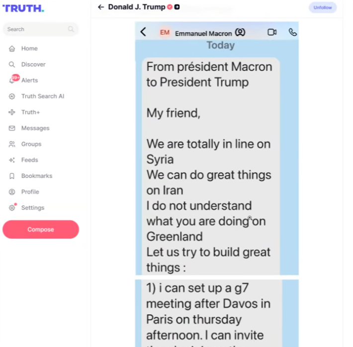 #Trump to Meet 'Varous Parties' Over Greenland in Davos