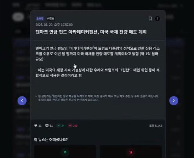 #오선의 미국 증시 라이브, 2026.01.20(화)[생방송] 미국vs유럽 '그린란드' 문제로 갈등 격화| 일본 국채 금리 4% 돌파 | 베센트, '미-유럽 갈등 속에서도 낙관적 메시지' |, 적극적으로 시청하기
